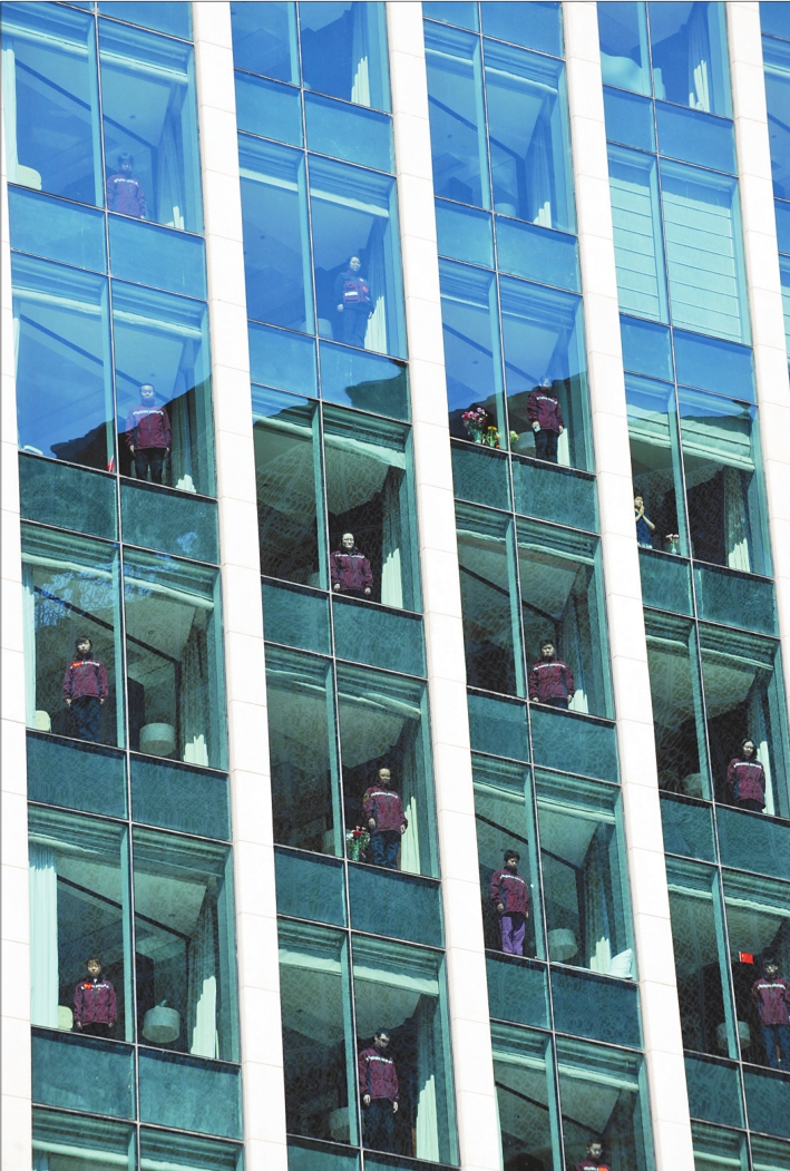 4日上午10点整,我省第一批援鄂医疗队队员在哈尔滨JW万豪酒店内隔着玻璃面朝武汉默哀。 当日,我省第一批和第六批援鄂医疗队在各自的医学隔离点举行默哀活动,队员们或走上阳台,或在酒店大厅里,面朝武汉方向,默哀三分钟。 本报记者郭俊峰摄