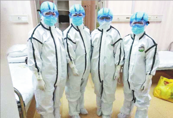 第七医院医疗救治第一梯队4名医护人员火线递交入党申请书。齐组本报记者姚建平摄