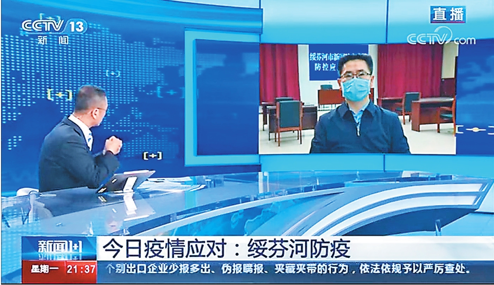 绥芬河市代市长王永平接受白岩松采访。央视截屏