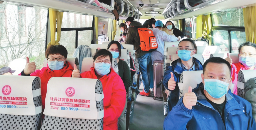 哈医大医护人员整装启程,奔赴牡丹江。 本报记者赵一诺摄