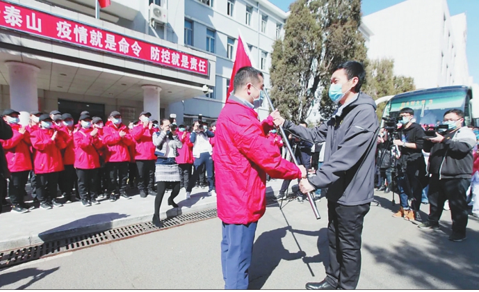 14日13时,佳木斯大学举行支援绥芬河市医疗队出征仪式,该校附属第一医院52名医护人员火速集结,奔赴新的抗疫战场——绥芬河。 李锐本报记者赵一诺摄