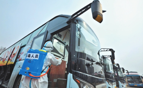 17日,绥芬河市消毒人员对担负转运入境人员任务的车辆进行消毒处理。据负责消毒工作的海融城市建设投资发展有限公司工作人员介绍,根据转运车辆具有流动性强的特点,他们做到随叫随到,保证每天1~2次对车辆进行全面消杀。 本报记者蒋国红张澍摄