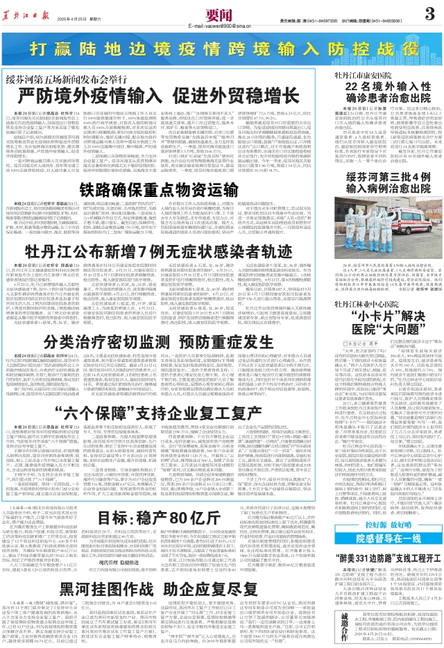 绥芬河第三批4例输入病例治愈出院