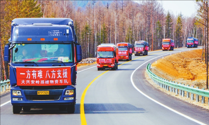 守望相助,共克时艰。25日6时,历经30多个小时、穿越5个地市、风雪兼程1600余公里,承载着大兴安岭人民深厚情谊的爱心物资车队顺利抵达绥芬河,助力百年口岸防疫战“疫”。 绥芬河口岸境外输入性疫情防控阻击战时刻牵动着大兴安岭人民的心。大兴安岭地委行署积极行动、奉献爱心,短时间内调集10辆运输车,运送3.5万箱总价值160余万元的北极泉天然矿泉水送往绥芬河抗疫前线。这批爱心物资饱含了大兴安岭人民的深情厚谊,传递着战“疫”必胜的信心和决心,寄托着林区人民对绥芬河人民的美好祝愿。 大兴安岭捐赠物资车队由10辆卡车组成,全程由交警护送,车队克服了沿途雨雪天气的影响,将爱心物资第一时间运抵绥芬河。为了尽快完成爱心物资的生产任务,漠河百环北极泉天然饮品有限公司加班加点生产,确保物资及时打包装车、运送到位。 王景阳本报记者刘大泳摄