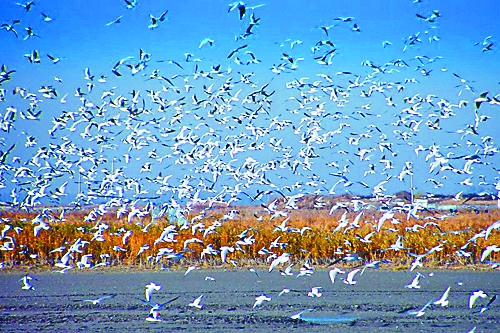 □红雪 东方白鹳,飞回来了,有三百多只!三月初的一天,摄影人一鸣兴致勃勃给我打来电话,并邀我“去看看”。我跑下楼,登上一鸣的越野车,急三火四地往大庆龙凤湿地赶。不到十分钟,就到了。三月的大庆,虽然冰雪尚未消融,可走在野外,天蓝,风轻,一丝丝暖意扑面而来。 此刻,一群摄影爱好者,或蹲,或卧,或站,架着“长枪短炮”,向湿地里“扫射”。可除了快门的咔咔声,大家蹑手蹑脚,静如处子。湿地里,一大片的鸟,背黑,腹白,长腿,长颈,有的悠闲散步、有的金鸡独立、有的互相嬉戏……啾啾地叫声,一下子钻入了我的耳鼓,仿若天籁之音。 东方白鹳!国家一级保护动物,难见的珍禽,尤其对于我们这个北方偏北的地方,一起飞来三四百只,这是第一次。一鸣伏在我的耳朵上,悄声说了一句什么,就撇下我架好相机,咔咔咔按起快门。我知道,对于任何一个喜爱拍鸟的人,谁也不想错过这样可遇不可求的机会。 为留住这种濒危的大鸟,早在十几年前,大庆爱鸟人士就在市郊沼泽地搭建“招引巢”。这些“招引巢”就成了东方白鹳千里跋涉后在大庆的第一个家。大庆也成了让东方白鹳留下来的第一个北方的城市。可即便这样,每年在大庆繁殖的东方白鹳,也就25窝左右。 作为资深摄影家,一鸣摸爬滚打在这片土地上三十余年,对大庆的生态变化了如指掌。就拿龙凤湿地来说吧。这个原来叫北二十里泡的地方,是石化工业和城市生活的“排污池”,臭气熏天,人不愿去,鸟儿不愿留。直到1997年建立起市级自然保护区,禁猎、禁渔、禁牧、禁耕作,禁止排放未经处理的污水,北二十里泡才渐渐出落成个小美女;六年后,这个小美女,经过换水、建起廊桥、雕塑、观鸟塔、鸟类科技馆,便成了远近闻名的大美女。龙凤湿地成了市民假日休闲的好去处,也是大庆向外界递出的一张靓丽的旅游名片。 环境改善了,自然就留住了以前只做迁徙停留驿站的候鸟,筑巢安家,繁衍后代。你听,鹤鸣啾啾、百鸟吟唱,仿若鸟语的联欢;你看,翅膀蹁跹,嬉戏游玩,好像一群天真的孩童,乐哉悠哉! 我抬眼远望,抽油机不停地叩拜大地,楼房就在湿地之侧,还有那么多飞鸟,在空中盘桓……一幅浑然天成的水墨画。听说这里已经晋升为省级保护区,总面积5050多公顷,是中国最大的城中湿地。 我趁那些摄影人忙活之际,在宽长的廊桥上盘桓,一眼就看到了那个奇特的雕塑:一支双筒猎枪,枪筒弯成圆圆的死结,几只鸟悠闲地栖息在弯曲的枪筒上。这不由地让我想起一个名字:董义。据说,这个雕塑是根据他的故事创作的。 “护鸟人”与“猎人”这两个走向两极的角色,是董义人生分水岭的标签。上个世纪九十年代初,董义喜欢在周末背上猎枪,到湿地里打野味。用董义的话说,看到中了枪的飞鸟从天而落,有种征服的喜悦。直到有一天,董义和朋友在湿地里打死了一只大雁。那晚,他躺在床上,耳朵里灌满了那声声凄厉。那一夜,董义辗转难眠。鸟类也有属于自己的感情,也会因为失去伴侣而悲痛欲绝,就像人类失去了亲人。董义抚摸着猎枪,深感内疚。第二天一早,他砸毁了猎枪托,弄弯了枪管,开启了与鸟类的另一种亲密关系——护鸟,拍鸟。 董义的故事,深深感染了雕塑师,那弯曲的猎枪、落在弯曲枪管上自由的小鸟的创意,跃然而生。 爱鸟、护鸟、拍鸟,也就成了这座因油而生的城市的一种潮流。此后,一位摄影人涉水冒险进入湿地,救助一只被铁夹子夹住的红嘴鸥的事,被当地媒体报道,那血淋淋的铁夹、凄厉的悲鸣,引爆了一座城市关于人鸟和谐相处的话题,并由此产生了一个节日——观鸟节! 为了救助国家一级保护动物金雕,有人甘愿舍弃繁华的城市生活,登上孤岛,一守就是36年,救助受伤和得病的丹顶鹤、白鹤、白头鹤、东方白鹳、大鸨、金雕等国家一级、二级保护动物三百多只。那些鸟伤愈后,不肯飞走,终日在爱鸟人的小屋周围盘旋……还有人为了留住东方白鹳和观察它们的习性,悄悄把自制的巢穴绑在杨树上,并在一定距离处挖地洞,然后潜伏进去进行观察,捕捉到白鹳妈妈饿着肚子喂养小白鹳的感人场面,并把这个感人瞬间,讲给更多的人听,让更多的人知道无论是人类还是动物,母爱都是一样的!关于鸟的动人瞬间,一鸣同样刻骨铭心。他说,人类无法想象,那划过天空的鸟的美;人们也无法预想到,那些可爱的生灵,多么富有人情味…… 夜幕西垂,身着迷彩服,脚蹬黄胶鞋,头戴遮阳帽,扛着“大头”照相机的一鸣回到了雕塑下——这是许多拍鸟人的形象。一鸣拍鸟三十年了,从骑自行车、挤公交车、打出租,到驾私家车,从傻瓜相机,到最先进的长镜头,再到用上遥控无人机,起早贪黑,走南闯北,穿梭于林间湿地。他说,能用镜头记录下一个个自然抗争的故事,带给自己一次次视觉和心灵的洗礼,足了! 大庆的鸟,多,共有273种,春秋两季有众多的候鸟迁来,就像一大片一大片五彩的云朵,就像一群游子回到了家……震旦鸦雀、丹顶鹤、白鹤、白头鹤、黑鹳、东方白鹳、金雕和大鸨,还有白琵鹭、大天鹅、小天鹅、灰鹤、蓑羽鹤、鸳鸯、毛脚鵟、普通鵟、阿穆尔隼、红隼,种类不一,可是却有着共同的目标——龙凤湿地!