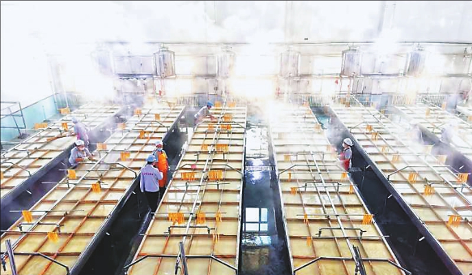 大豆深加工的腐竹生产线。 本报记者姜斌摄