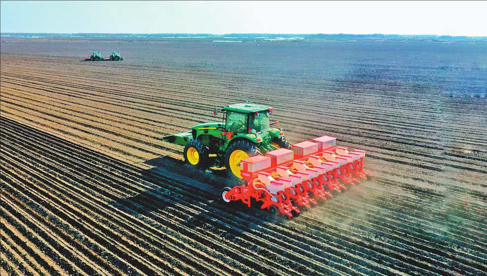 当前,正是全省大田播种的最佳时节,北大荒集团公司所属各农场广大干部职工抢抓农时,组织机械力量,迅速掀起大田播种作业高潮,千里沃野一片繁忙的春耕景象。在农垦北大荒股份勤得利分公司,每天都出动数百名职工和几十台机车,抓住近期的晴好天气进行玉米和大豆的播种。这是第六管理区正在进行玉米播种作业。 刘江母彬本报记者邵国良摄