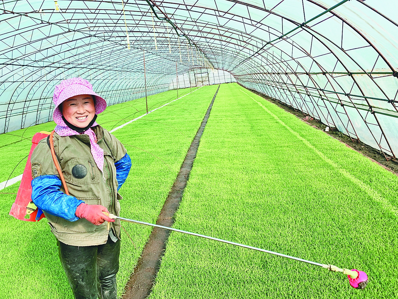 建三江管理局高质量、高标准、高效率展开今年1000万亩水稻的插秧工作。面对长势良好的秧苗,农民露出了喜悦的笑容。 祖守和陈志伟摄