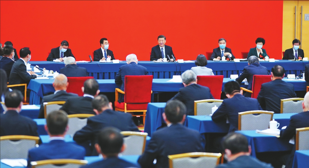 5月23日上午,中共中央总书记、国家主席、中央军委主席习近平看望参加全国政协十三届三次会议的经济界委员,并参加联组会,听取意见和建议。中共中央政治局常委、全国政协主席汪洋参加看望和讨论。 新华社记者谢环驰摄