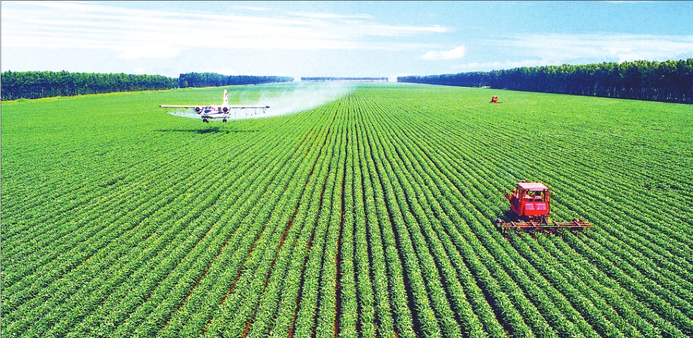 垦区进行航化作业,喷施微量元素、有机环保叶面肥、防治病虫害等,确保粮食生产安全。 本报记者郭俊峰摄