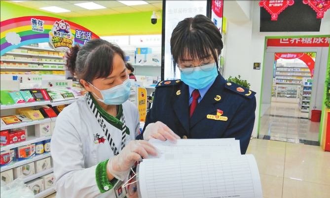 执法人员对辖区内所有药店实行巡回检查。 柏凡露本报记者邢汉夫摄