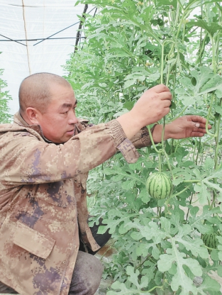 □文/摄本报记者李天池 “喝”湖水、蜜蜂采蜜授粉、每天12小时专人精心管护……香坊区黎明街道办事处的太阳升村,共有果蔬大棚65栋,其中46栋是西瓜大棚,村民们精心种植的“特小凤”西瓜,将在端午节后大批量上市。 日前,记者驱车1个小时来到了太阳升村。走进村民张耀明的西瓜大棚,他正专心将西瓜蔓缠在吊绳上,看到主蔓上长出旁枝,便将其除掉。记者看到,进入坐果期的西瓜最大的已经长到了成人拳头大小,重量在1斤多,小的已经长到了鸡蛋大小。他告诉记者:“目前长势特别好,6月25日端午节以后将陆续上市。” “只要主蔓长势好,西瓜才能长得好”。每天早上6时,张耀明准时进入大棚,浇水、通风、锄草……一直劳作到晚6时。他介绍,过段时间要将西瓜装入塑料网兜内,以免太重坠落。只能留主蔓上的一个瓜,保证其重量在4~5斤左右,太大的销路不好。 记者发现有很多蜜蜂“嗡嗡”地在棚里飞来飞去,张耀明笑着说:“我们村里种的西瓜都是由蜜蜂采蜜授粉,确保绿色种植,结出的西瓜糖度较高,吃起来口感好。” “灌溉用水则来自黎明湖。”该村支部书记耿会清告诉记者,我们通过地下2000多米的管道,将湖水引至村中。湖水里含有非常丰富的微生物,是很好的天然肥料,为西瓜提供了丰富的营养。另外,湖水温度要高于地下井水,非常适宜于瓜苗生长,这也是西瓜能提早半个月上市的“秘诀”。 耿会清说,村民一年两茬种植特小凤,因为是规模种植,不愁卖、收入高,全村每年产量在10多万斤左右,哈达果蔬批发市场的经纪人不请自到,主动上门收瓜。 现在,全村有近30户农民种植该品种。有瓜农给记者算了一笔账,一亩“特小凤”西瓜比一亩柿子和黄瓜要多收入2000多元。
