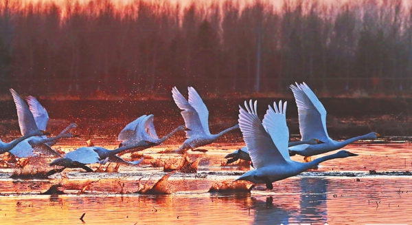 李冰 在广袤无垠的三江平原上,有着“东亚之肾”美誉的洪河湿地坐落其间,它位于农垦建三江管局境内。 夏日,这里天蓝水碧、林茂草青。在这200多平方公里的怀抱里繁衍生息着18目48科236种鸟类,其中受国家重点保护的有东方白鹳、大天鹅、丹顶鹤、白枕鹤等44种,受国际候鸟与栖息保护的有121种。它们或嬉戏于水中,或翱翔于天际,或穿行于林间,嘤嘤成韵。 这里是一个植物“博物馆”。在这里可以看见野大豆、水曲柳、黄菠萝等珍贵的植物和树种,郁郁葱葱的植物,彰显着蓬勃的生命力。极目远望,无边无垠,满眼尽是如诗如歌的美景。吹微风,听鸟鸣,看蜻蜓翩翩起舞,赏鸟儿逆风翱翔,让人心旷神怡,神清气爽!