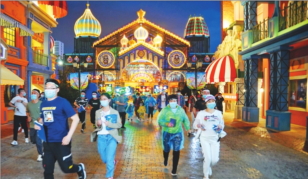 近日,哈尔滨融创乐园举行夜跑活动,市民在附近的商场购物、吃夜宵,既锻炼了身体又放松了心情。 本报记者郭俊峰摄