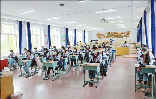 呼中区严格按照复学复课常态化防疫工作要求,实行校内、校外“闭环管理”,全流程细化防控措施。这是复课学生按照规定座位上课。 冯宏伟本报记者刘大泳摄