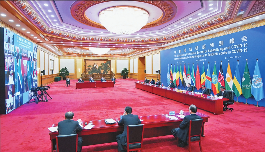 6月17日晚,国家主席习近平在北京主持中非团结抗疫特别峰会并发表题为《团结抗疫共克时艰》的主旨讲话。 新华社记者黄敬文摄