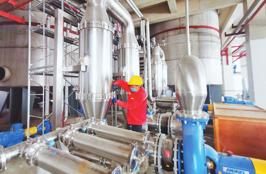 肇东市星湖科技生物发酵产业园是全省百大项目,也是粤黑合作重点工程。项目总投资6.8亿元。目前,发酵车间、提取车间、反应车间、精制车间都已进入设备安装阶段,预计7月末完成设备安装工作,8月初进行试生产。 肇东市星湖科技有限公司是一家以玉米为原料,精深加工生产赖氨酸为主,集生物产业研发、生产和销售于一体的企业,腺苷、缬氨酸、核苷、核苷酸等产品畅销几十个国家。 这是技术工人正在肇发酵车间安装设备。 霍永祥本报记者邱成摄