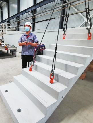 采用装配式建筑工法的预制件可现场拼接。 本报记者邢汉夫摄