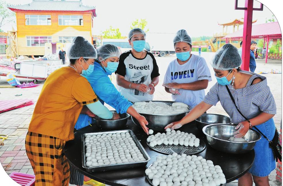 □本报记者王玮 在绥化市北林区双河镇西南村的稻田公园里,整齐的秧苗摇曳着丰收的喜悦,强劲的锣鼓敲响了村民的好日子。 村民王福英做梦也没想到,稻田公园里自己做“大锅菜”的手艺能派上用场,还挣了大把的钞票。“我在这儿干5年了,炖鱼炖肉灌血肠,也就农闲时干上四个月,一万多块就到手了!”尽管带着口罩,但丝毫挡不住王大姐的兴奋劲儿。她嘴上说着,手里也没有停下,娴熟地揉搓着一大盆的糯米,准备做蒸粘糕。 和王大姐一起锅前锅后忙活的,还有十几个村民。那一口口大锅,不仅蒸出了“乡”味十足的好味道,也蒸出了村民节节高的好生活。 “这是稻田公园打造的‘集市’,容纳100个商户没问题,而且是免费的。”黑龙江滨北正大农业集团董事长任秀波说,“村民在这里展示自己的‘才艺’,游客不仅能吃到正宗的‘绥化滋味’,走时还可以给家人朋友带回品尝,让‘绥化滋味’香飘万里。” 自滨北正大农业集团投资建设稻田公园起,任秀波就以“园”为家了。最长时两个月吃住在园里。稻田公园,通过打造“都市后花园”“田园新体验”,让前来观光的游人体验农耕文化,品尝农家美食,畅游田园美景,欣赏田园风光,体验采摘乐趣。稻田公园不仅是任秀波的创业梦想,更是他带领村民共同致富的舞台。 在稻田公园里很多农民通过采取带地入社的方式,与滨北正大农业集团建立了利益联结机制,“统一品种、统一管理、统一销售”,不仅使农产品质量有了可靠的保证,还卖上了好价钱。还有更多村民,像王大姐一样,在家门口找到了稳定的工作。 72岁的李恒没想到老了还能打工挣钱了。严重的腰间盘突出压迫着他腿脚不利索,稻田公园门卫是他的新岗位,一个月有1200元的收入。63岁的杨文礼在公园里打零工,每天80~120元,今年比去年挣得还多。 双河镇西南村党总支书记闫井武说:“现在,农民的收入增加了,村里的环境变美了。路宽了、灯亮了,大家心气十足,日子更有奔头。” 村企合作探索出了乡村振兴的新路径,田园游为村民们铺就了一条就业路。任秀波说,我们要打造一个永不落幕的农产品大集,把纯手工、原滋味充分挖掘出来,让寒地黑土的产品插上翅膀,“飞”进千家万户。 华灯初上,歌声嘹亮。西南村小剧场的演员们开始演唱。这歌声,唱出了奔小康的喜悦,在稻田公园上空久久回荡。