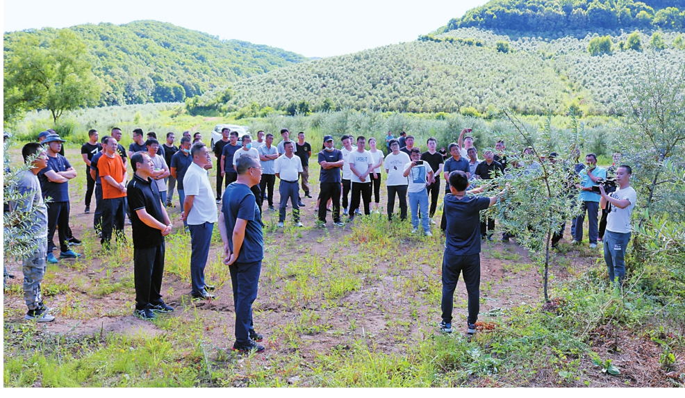 □文/摄高宇 本报记者马一梅刘楠 “将枝条顶端的生长点摘除,虽然可以抑制它本身的生长,但会促进分枝,也能增加座果率。”在八面通林区沙棘夏季管理现场会上,中元沙棘制品有限公司总经理杜中元以现地沙棘树为例,围绕夏季沙棘疏枝、剪枝、施肥、消毒等管理技术进行了详细的讲解。 针对夏季沙棘生长旺盛,病虫害易发生的特点,八面通林业局有限公司把夏季规范管理作为当前经济林工作的重中之重来抓,要求各单位抓住沙棘疏枝、剪枝、施肥、消毒等关键环节,强化对种植户夏管技术的培训。 2015年以来,八面通林业局有限公司以天然林保护工程和退耕还林工程为依托,大规模发展冬果沙棘种植,集中打造了三兴、自兴、红星、枯河沟、光义五条沙棘谷。截至2019年底,栽植总面积达5万亩,进入盛果期可年产沙棘果5万吨以上,原料销售收入达到4亿元,成功建设成为稳定的工业化冬果沙棘原料基地。 现场会在三兴沙棘谷召开。