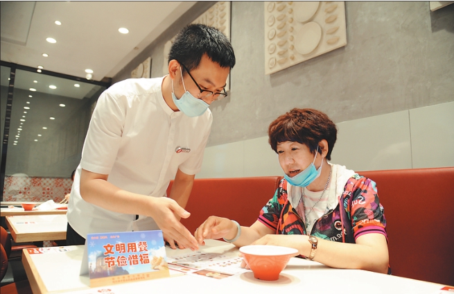 服务员建议顾客适量点餐。 本报记者荆天旭摄