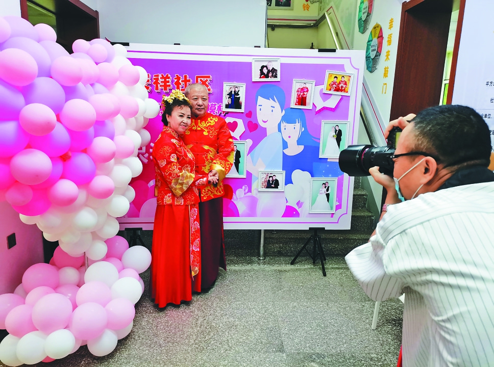 □文/摄赵琪本报记者马智博 “爷爷、奶奶,看着我,笑……”25日上午,哈尔滨市道里区抚顺街道安祥社区内热闹非凡,15对银发夫妻来到社区“幸福时光照相馆”,在七夕这个传统节日里,街道邀请志愿者们用照片帮助老人们定格属于他们的幸福时光。 “我们结婚60多年了,当年没举行像样的仪式,更没拍过婚纱照,听说社区七夕节这天要开展摄影志愿服务活动,我们第一个报了名。补拍了婚纱照,感觉我们幸福的生活更加甜蜜了。”已是钻石婚的社区居民王松梅夫妇在拍过照片后满意地说。 目前,哈尔滨市道里区抚顺街道已成立治安巡逻、环境卫生、帮扶救助等10支志愿服务队伍。2020年,街道新成立了摄影志愿服务队,不仅在传统节日七夕节圆老人补拍婚纱照的梦想,还策划在疫情结束后,以“一家人”为主题为辖区居民免费拍照,为居民们记录幸福瞬间。