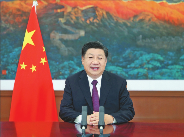 9月4日,国家主席习近平在2020年中国国际服务贸易交易会全球服务贸易峰会上致辞。新华社记者鞠鹏摄