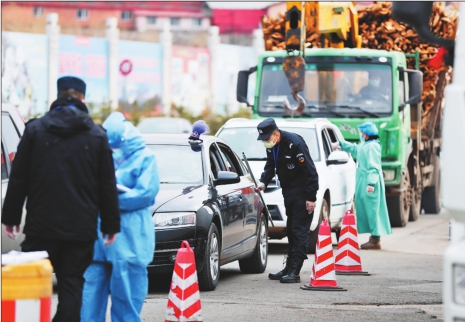 工作人员在黑龙江绥芬河市入城口对出行人员进行信息查验(4月18日摄)。 新华社发