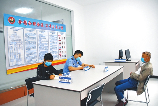 港湾街道办司法调解员为百姓解答法律问题。