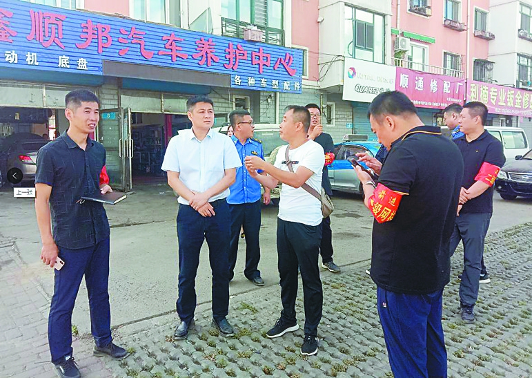 检查汽车修配占道经营及环境卫生情况。