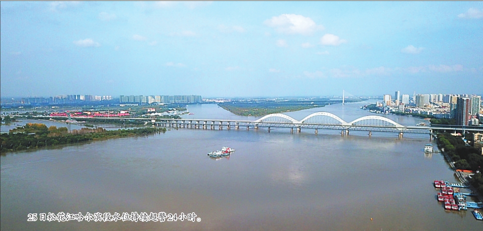 本报25日讯(李刚记者张长虹)根据省水文水资源中心监测分析,9月25日8时,松花江干流哈尔滨站水位118.50米,与前一日持平,超过警戒水位0.20米,流量8380立方米/秒。洪峰水位已持续超过24小时,表明松花江干流哈尔滨段水位已到洪峰峰值,此次洪水量级约9年一遇。25日,全省共有6条河流14个站点超过警戒水位0.10米~0.93米。 25日,松花江沿岸各地也做好迎战洪峰准备。根据水文水情部门预报,松花江干流洪峰将于9月28日至29日到达方正县,预计洪峰水位将达到105.40米,超警戒水位1.0米。为确保洪峰安全通过,方正县组织21个驻守单位1500位驻守人员,由20多位县水务局技术专家指导进行彻底的巡堤查险。出动抢险民兵预备役200人次,抢修加固堤防险段6.6公里,调拨防汛编织袋6万条,彩条布2万平方米,铁线5吨,备砂石料2000立方米。
