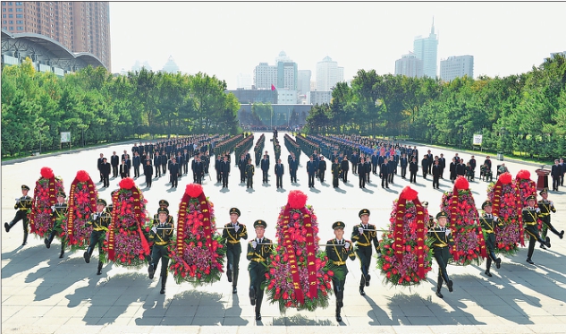 烈士纪念日向英雄烈士敬献花篮仪式在哈尔滨市道外区长青公园举行。徐旭本报记者苏强摄