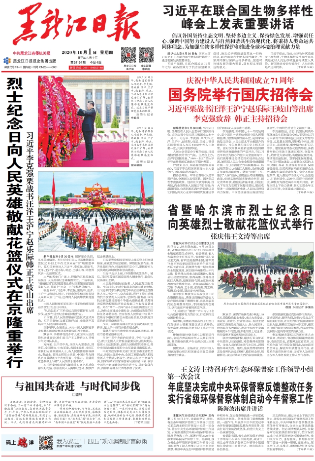 本报9月30日讯(记者曹忠义)英烈垂青史,鲜花祭忠魂。9月30日上午,省暨哈尔滨市烈士纪念日向英雄烈士敬献花篮仪式举行。省委书记、省人大常委会主任张庆伟,省委副书记、省长王文涛,省军区政委傅永国,陆军第78集团军政委赵雷等来到哈尔滨市道外区长青公园,同各界代表一起向英雄烈士敬献花篮,深切缅怀英雄烈士不朽功勋,传承伟大的东北抗联精神,激发全社会爱党爱国、崇尚英雄、拼搏奋进的巨大热情,凝聚新时代黑龙江振兴发展的强大精神力量。省领导陈海波、张安顺、李海涛、王永康、张雨浦、贾玉梅、张巍、陈安丽、聂云凌出席活动。 东北抗日暨爱国自卫战争烈士纪念塔巍然矗立,塔身正面镌刻的鎏金大字在阳光照耀下熠熠生辉,各界代表面向纪念碑整齐列队,手持黄白两色菊花,烘托出庄严肃穆的浓重气氛。 “礼兵就位!”随着一声口令,12名礼兵迈着铿锵有力的步伐,行进到指定位置持枪肃立。 10时整,省暨哈尔滨市烈士纪念日向英雄烈士敬献花篮仪式正式开始。省委常委、哈尔滨市委书记王兆力主持仪式。 伴随着雄壮嘹亮的《义勇军进行曲》,全场齐声高唱中华人民共和国国歌,激昂振奋的歌声在长青公园上空激荡回响。 国歌唱毕。全场肃立,向为中国人民解放事业和共和国建设事业英勇献身的烈士默哀。 默哀毕,深情的《献花曲》响起,18名礼兵稳稳抬起由省委、省人大常委会、省政府、省政协、驻省各部队、各民主党派和工商联及无党派人士、各人民团体、哈尔滨市各界群众、老战士和烈士亲属敬献的9个花篮,缓步走向烈士纪念塔,将花篮整齐摆放到纪念塔基座上。 张庆伟神情肃穆,缓步行至台阶正中花篮前,驻足凝视,郑重整理花篮缎带。全体人员向纪念塔行注目礼,深切缅怀革命先烈。随后,张庆伟等领导同志及各界代表缓步绕行,瞻仰纪念塔、敬献鲜花,表达对革命先烈的哀思和敬意。 参加敬献花篮仪式的各界代表表示,要铭记历史、缅怀先烈,珍惜今天来之不易的美好生活,在伟大的东北抗联精神中汲取力量,踏踏实实做好本职工作,把英烈开创的事业不断向前推进,为实现中华民族伟大复兴的中国梦贡献力量。 参加敬献花篮仪式的还有省人大常委会、省政府、省政协现职副省级领导,省法院院长,武警黑龙江省总队、空军哈尔滨飞行学院负责同志,哈尔滨市负责同志,解放军和武警官兵代表,省及哈尔滨市各界代表,退役军人及省市退役军人事务系统工作人员代表等。
