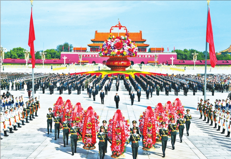 9月30日上午,党和国家领导人习近平、李克强、栗战书、汪洋、王沪宁、赵乐际、韩正、王岐山等来到北京天安门广场,出席烈士纪念日向人民英雄敬献花篮仪式。新华社记者谢环驰摄
