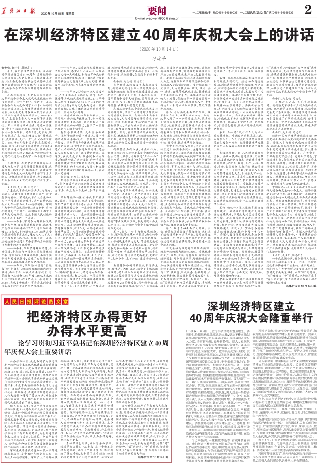 在深圳经济特区建立40周年庆祝大会上的讲话