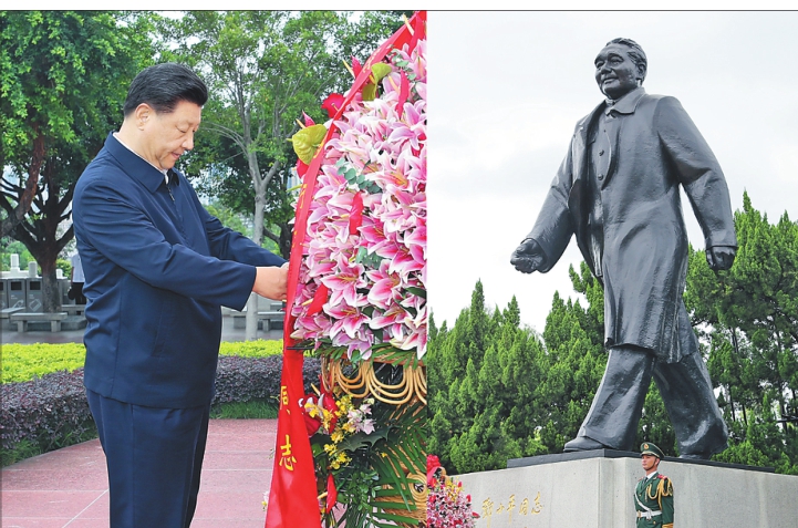 10月14日,深圳经济特区建立40周年庆祝大会在广东省深圳市隆重举行。中共中央总书记、国家主席、中央军委主席习近平在会上发表重要讲话。这是当天下午,习近平来到莲花山公园,向邓小平同志铜像敬献花篮。