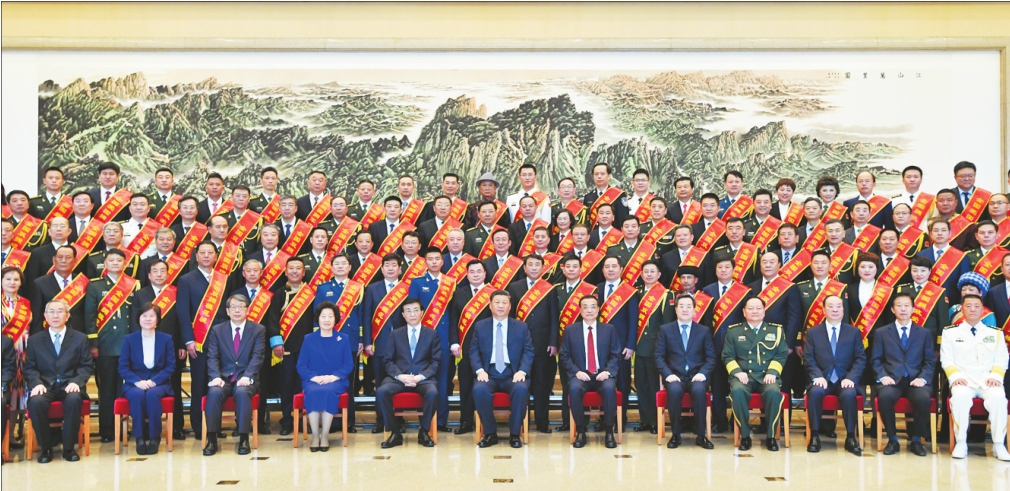 10月20日,党和国家领导人习近平、李克强、王沪宁等在北京会见全国双拥模范城(县)命名暨双拥模范单位和个人表彰大会代表。 新华社记者李学仁摄