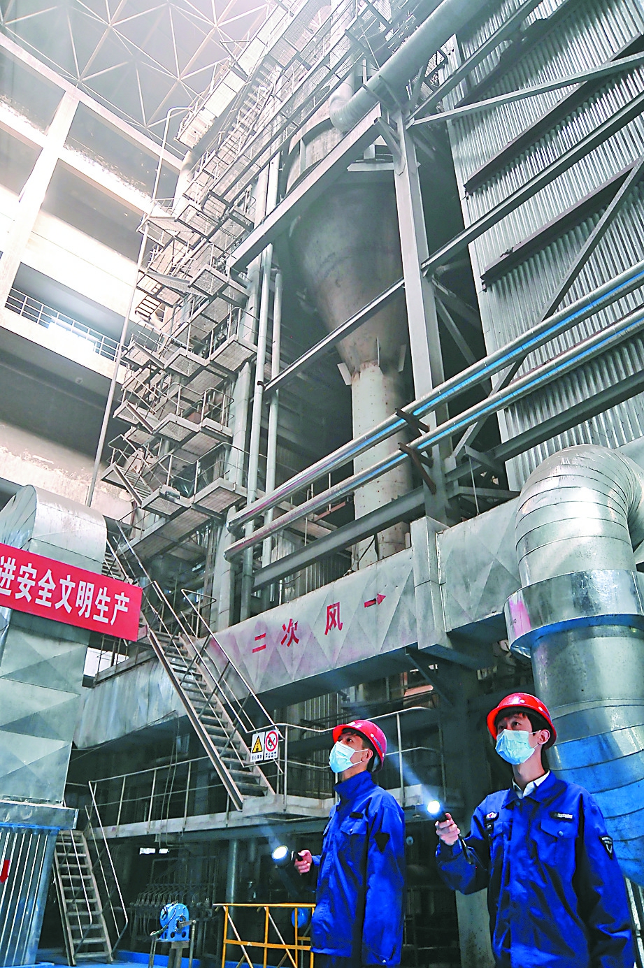 哈尔滨市华能集中供热有限公司内,工作人员在检查锅炉的运行情况。本报记者苏强摄