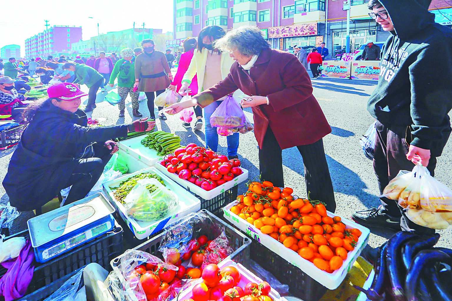 连日来,讷河市孔国乡孔国村日光温室生产的西红柿、黄瓜、香瓜等新鲜果蔬在早市开启热销模式。孔国村采摘园共有11个温室大棚,全年预计收益可达85万元,除为建档立卡户提供就业增加收入外,每年拿出大棚租金收益用于建档立卡户分类分档次进行效益分红,户年均增收350元。 赫松龄本报记者姚建平摄