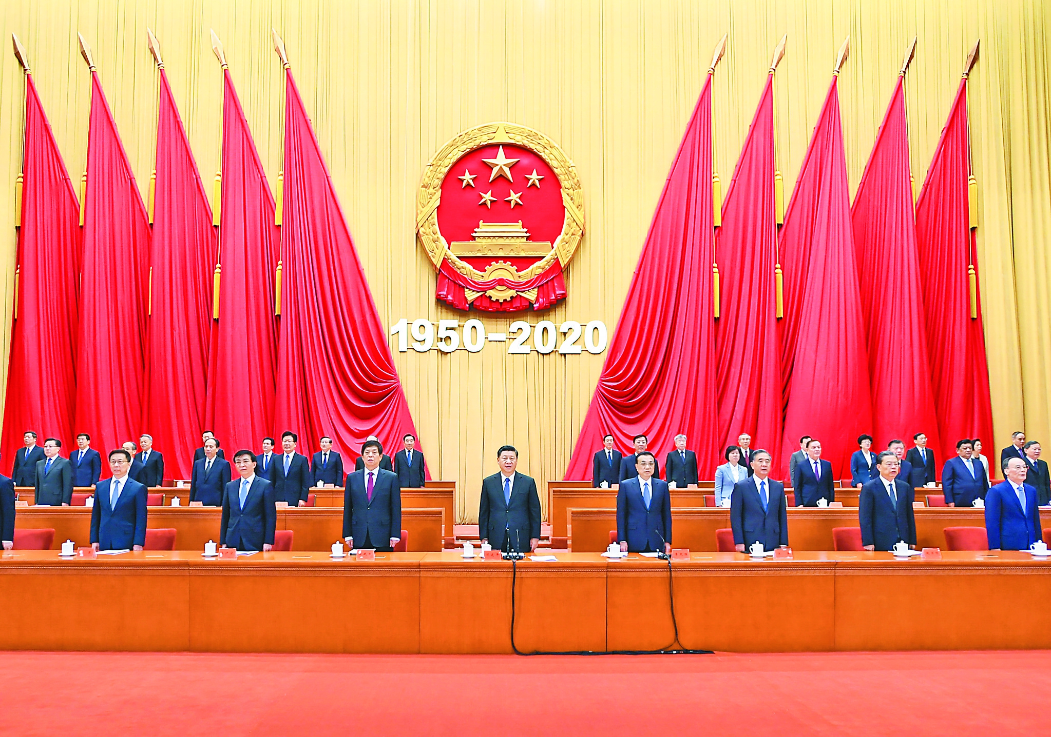 10月23日,纪念中国人民志愿军抗美援朝出国作战70周年大会在北京人民大会堂隆重举行。习近平、李克强、栗战书、汪洋、王沪宁、赵乐际、韩正、王岐山等出席大会。新华社记者谢环驰摄