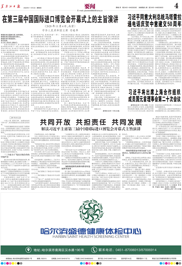在第三届中国国际进口博览会开幕式上的主旨演讲