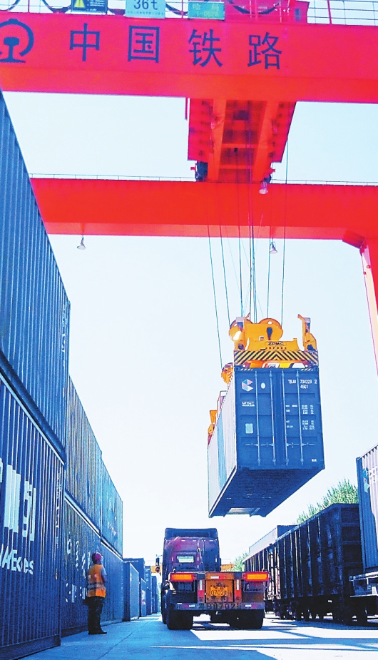 近日,在齐齐哈尔车务段齐货车间集装箱货场,大型吊车正在紧张作业。据介绍,作为齐齐哈尔大型集装箱运输枢纽,这个货场目前每月货物发运量2万吨左右,较疫情严重期间运量增长4500吨,增幅达20%多。该货场在货物运输的同时,还出色完成担负的“一带一路”中欧班列集装箱集结向口岸排空任务。宋燕军本报记者邵国良摄