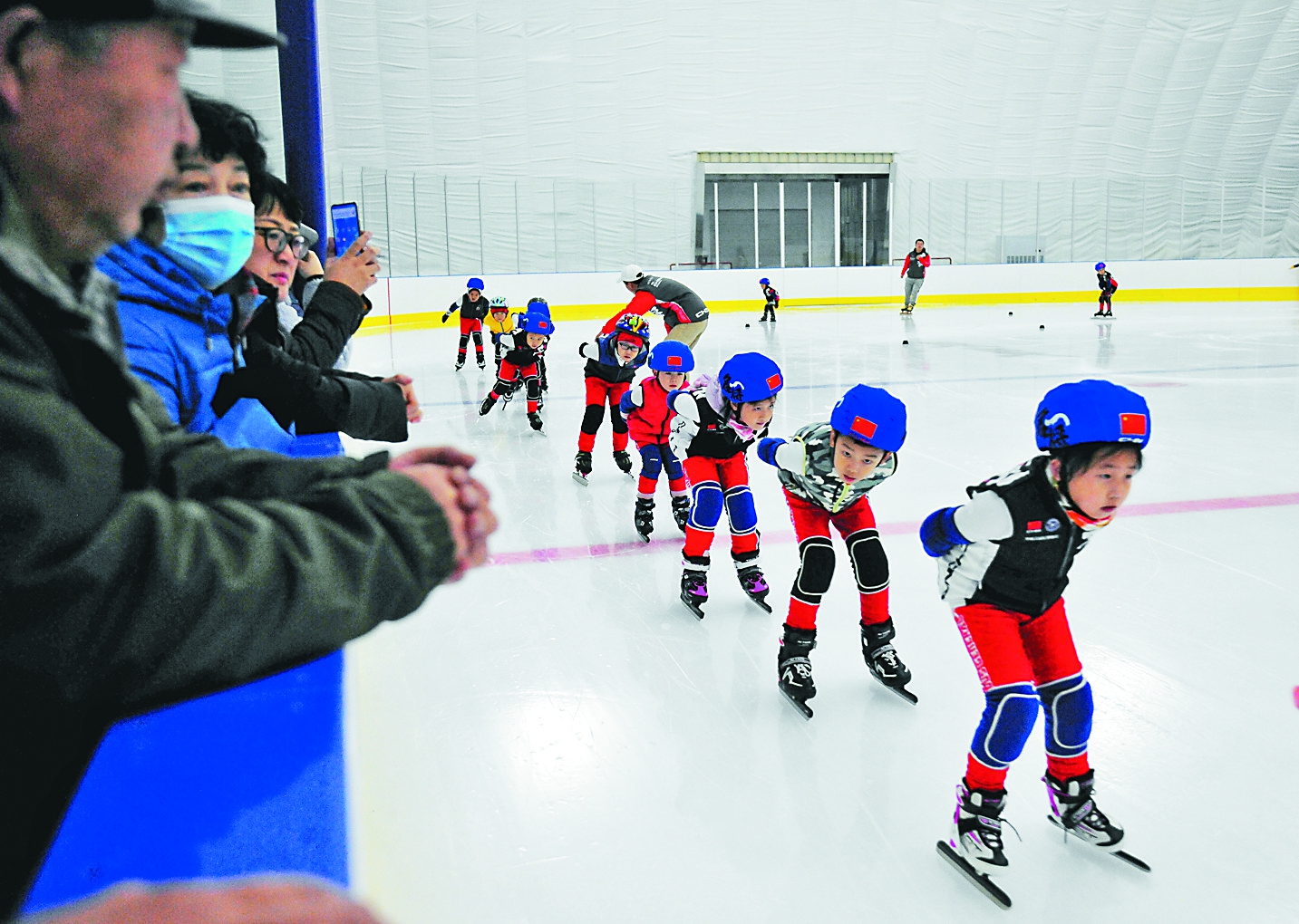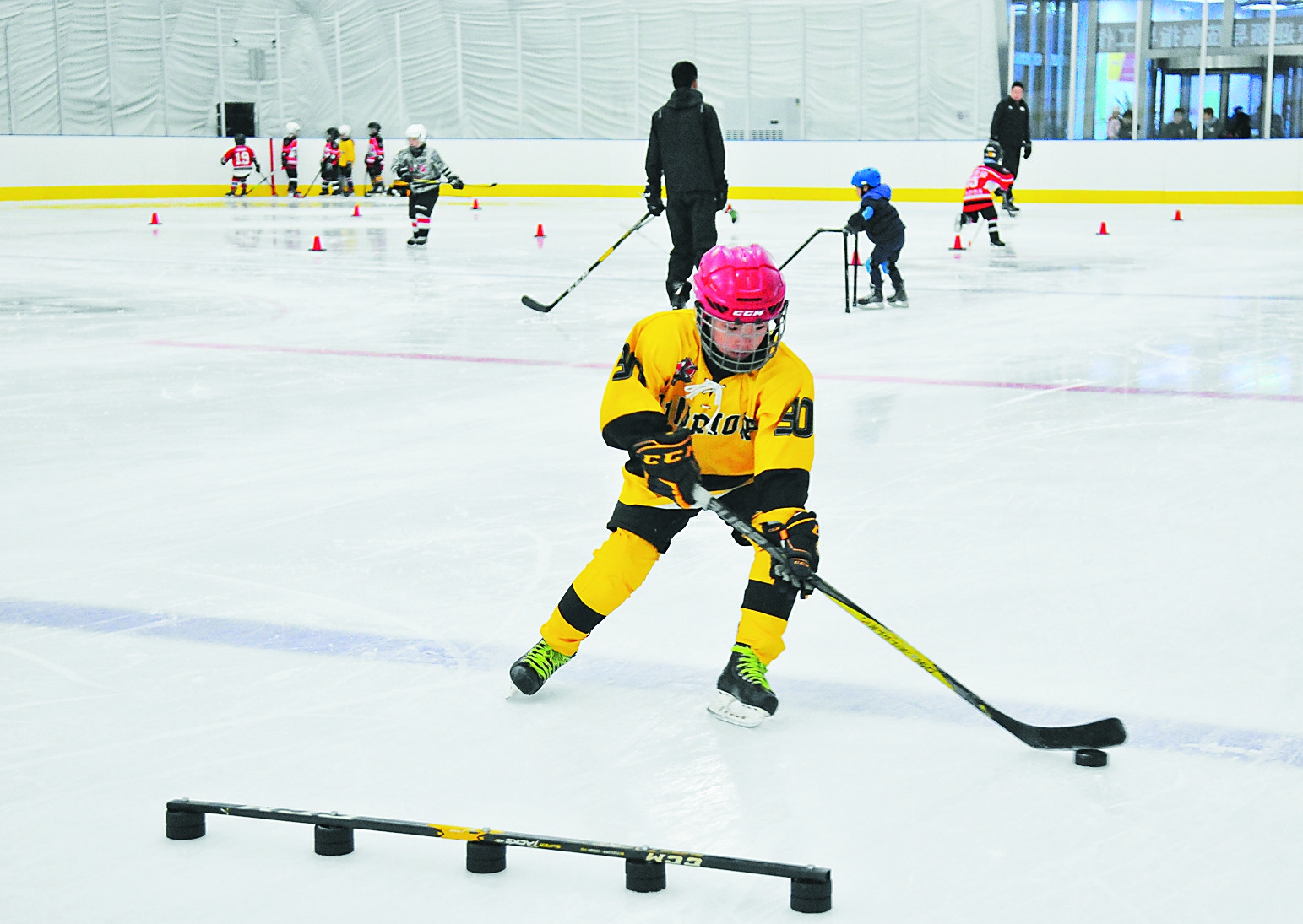 ↓小学员在上滑冰课。本栏照片均为本报记者蒋国红摄