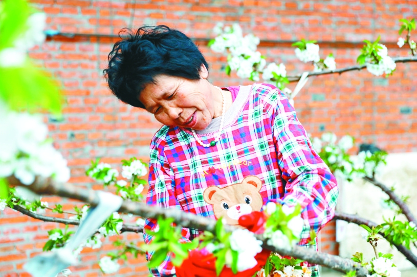 三村富特果蔬基地贫困户认领樱桃树和参与公益劳动助农增收。