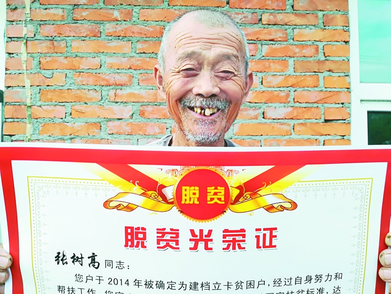乐业村贫困户张树高脱贫后的幸福笑脸。