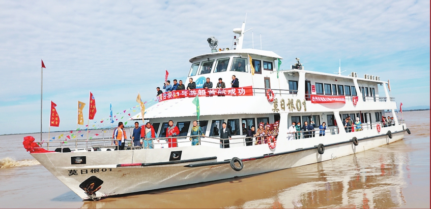 同江市三江口起点广场举行同江八岔赫哲游船首航启动仪式。