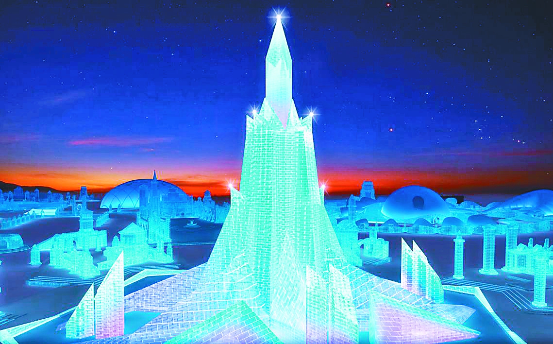 第二十二届哈尔滨冰雪大世界主塔效果图。