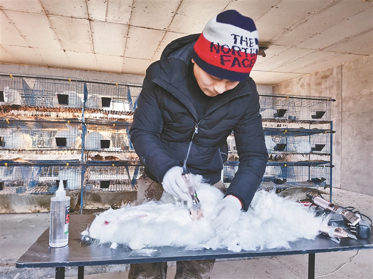 初冬时节,兔舍内嗡嗡的电推子声,盖过了室外的寒风飕飕,名山镇名丰长毛兔养殖农民专业合作社负责人高陆峰,正在聚精会神地为长毛兔剃着长长的绒毛;团结镇工农兵村鑫河水稻专业合作社稻米加工厂,一人多高的码垛机器人,灵活精准地将六面整形真空包装好的袋装大米整齐地码好;太平沟镇石虎沟村一座现代化的养牛场一落成,就住进了贫困户的32头肉牛。