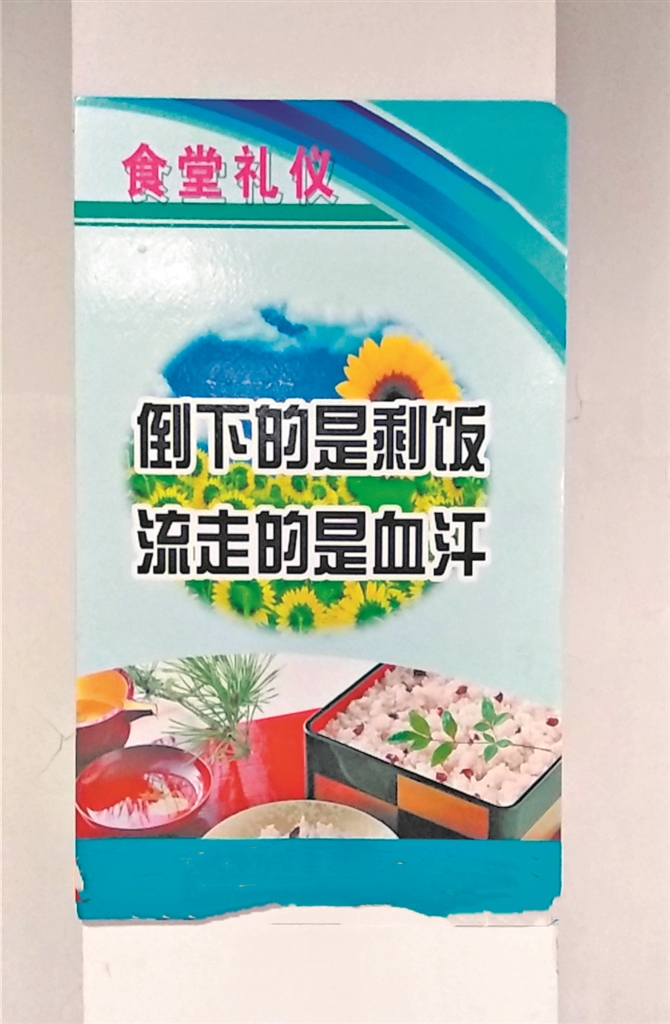 学校食堂的墙壁上,张贴着拒绝浪费的海报。