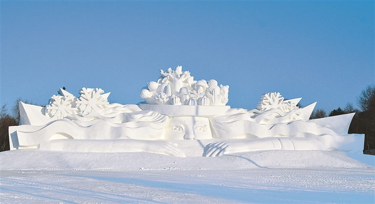 雪的浪漫转瞬即逝,留住这份美好最好的办法,就是用高超的技艺将其雕刻成雪塑,赋予其更多的内容和意义。《华夏神龙》寓意着祝福华夏民族振兴、人民安居幸福和吉祥,《飞雪迎春到》用精美的工艺呈现了冰雪与文明的女儿,为人们送去最诚挚的春的祝福……
